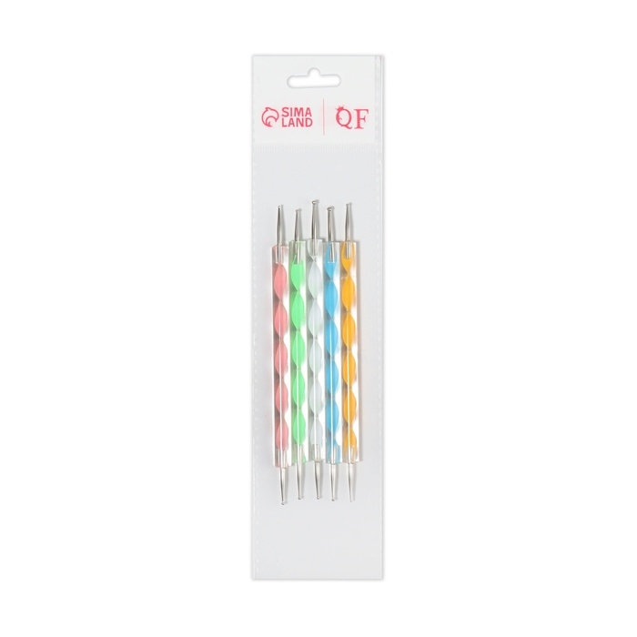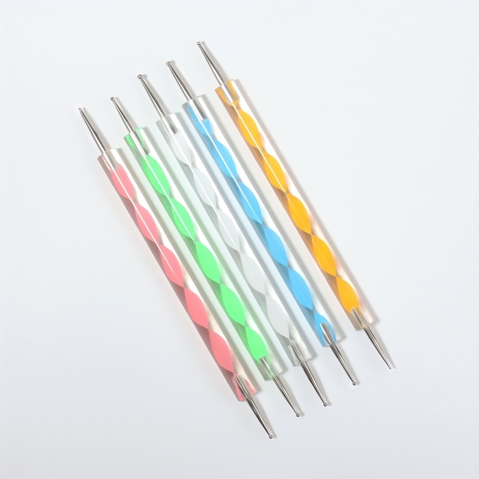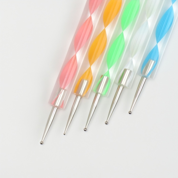 Дотсы двусторонние для дизайна ногтей, 5 шт, 13 см, d = 0,5/1/1,5/2/3 мм, разноцветные