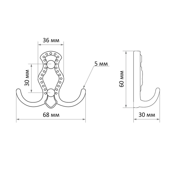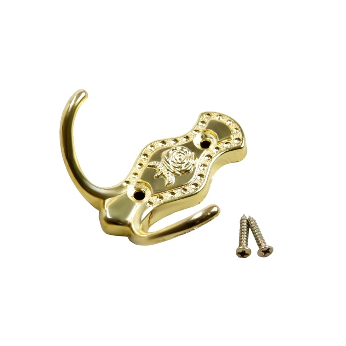Крючок мебельный ТУНДРА TKD023, двухрожковый, золото