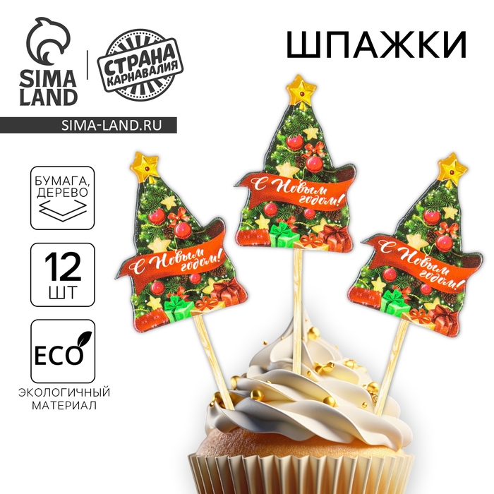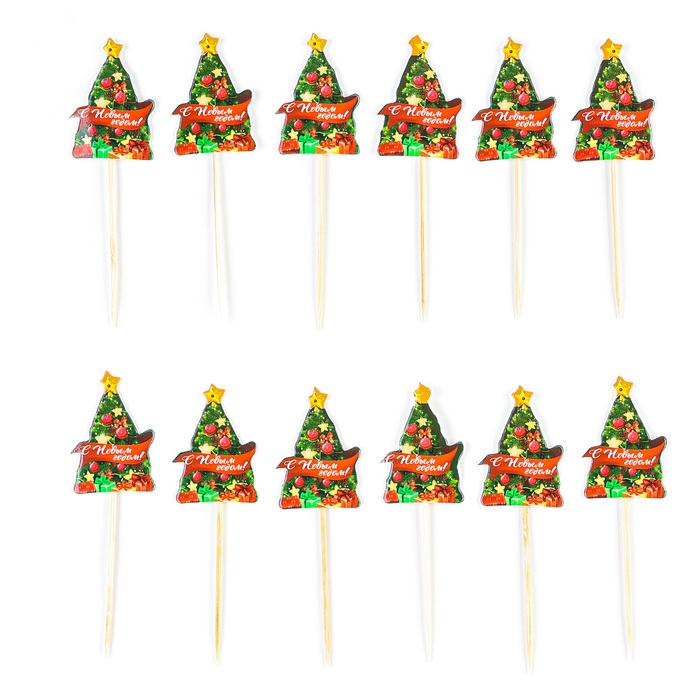 Новогодние шпажки «С Новым Годом», ёлка, на новый год, набор 12 шт.