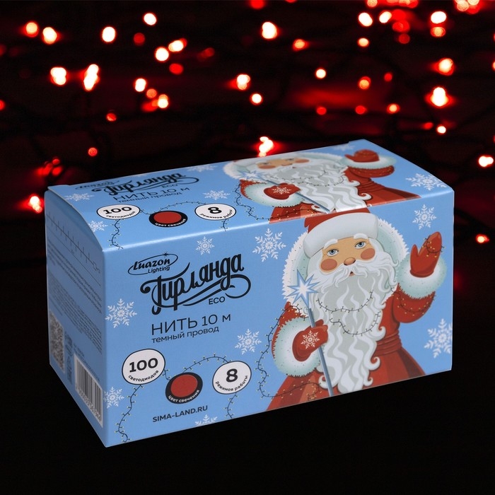 Гирлянда «Нить» 10 м, IP20, тёмная нить, 100 LED, свечение красное, 8 режимов, 220 В