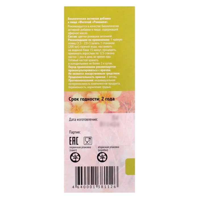 Состав: ромашка аптечная (цветки).