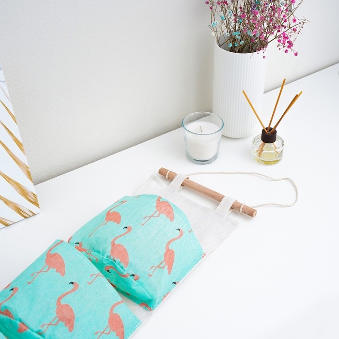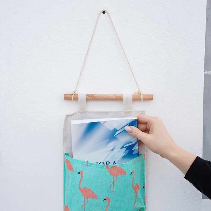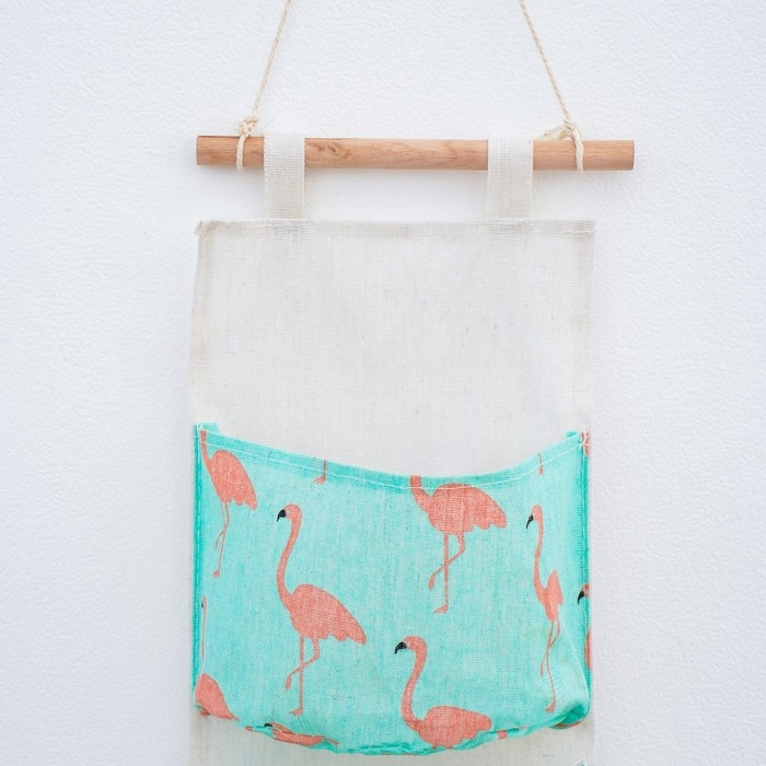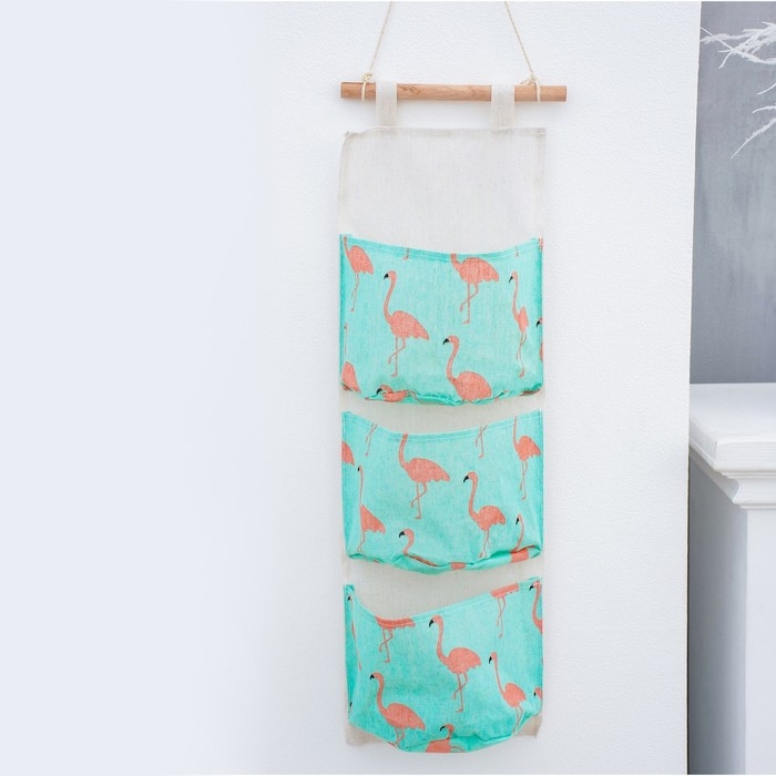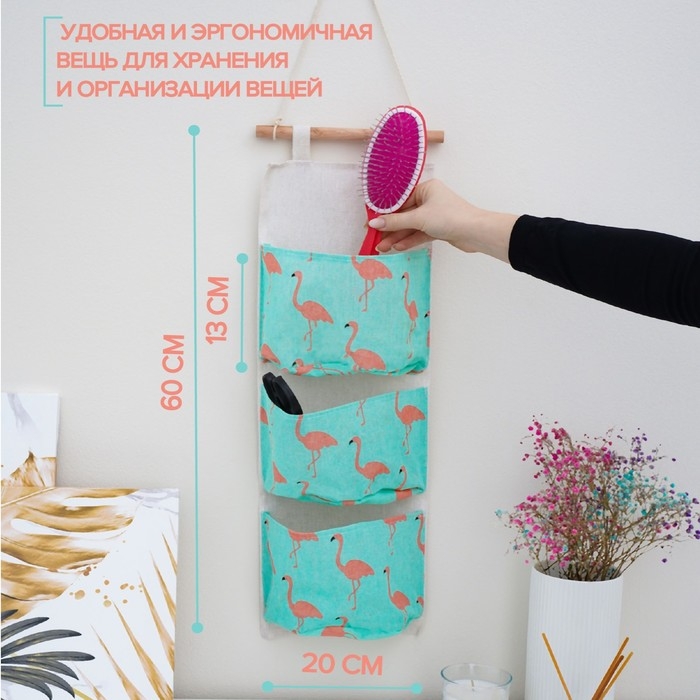 Органайзер подвесной с карманами Доляна «Фламинго», 3 отделения, 20×60 см, цвет голубой
