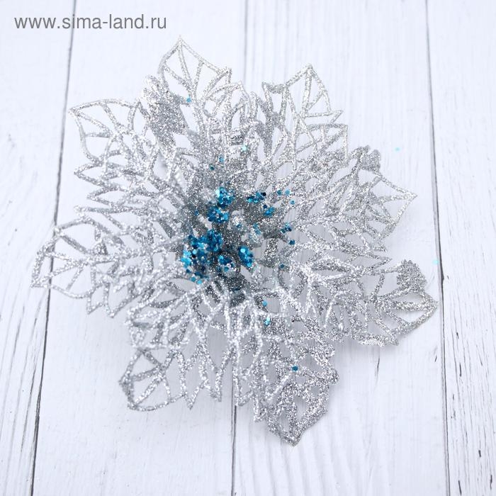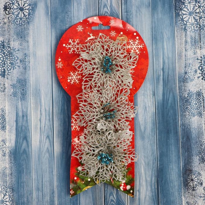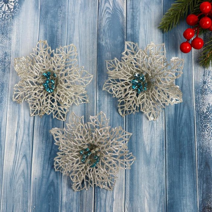 Украшение ёлочное "Ажурный цветок" (набор 3 шт) 10,5 см, серебро