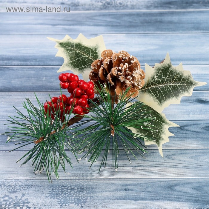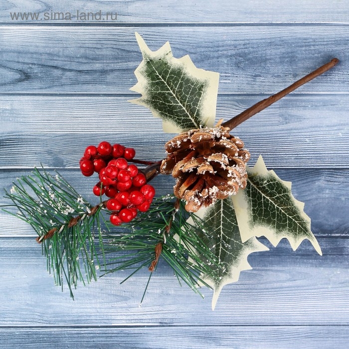 Декор "Зимние грезы" калина красная шишка в снегу 20 см
