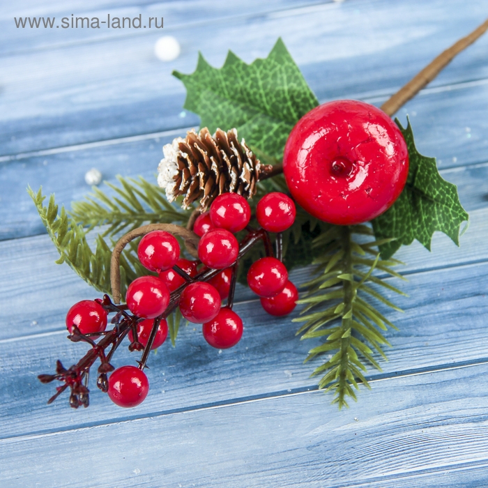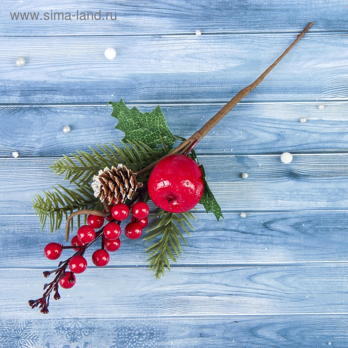 Декор "Зимние грезы" калина красная яблоко шишка, 25 см