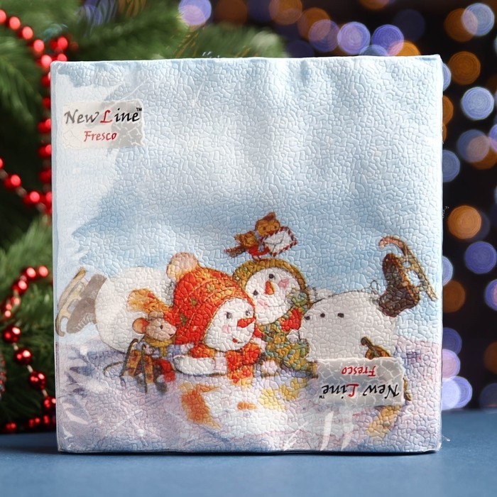 Новый год. Салфетки бумажные Fresco "Снеговички", 2 слоя, 33*33 см, 20 листов