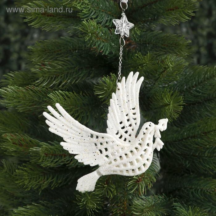 Украшение ёлочное "Голубь с веткой" 12,5х11,5 см, белый