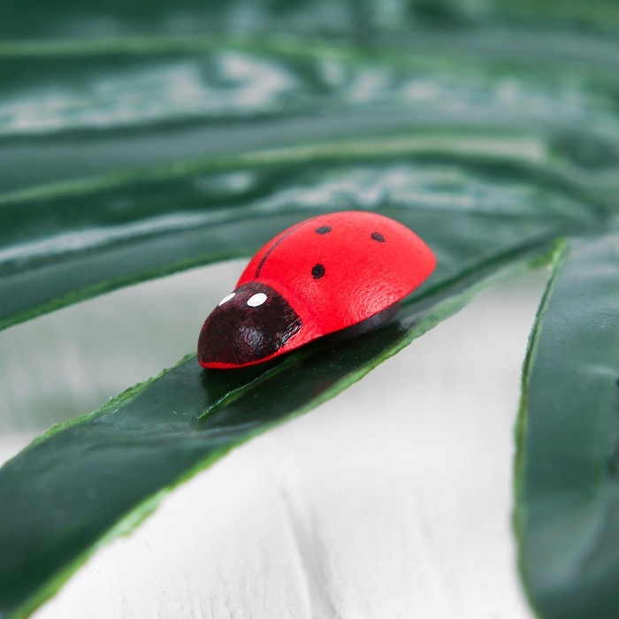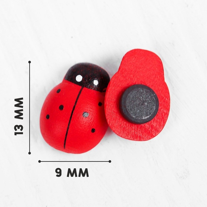 Тело божьих коровок сделано из дерева, а на основании находится круглый магнит.