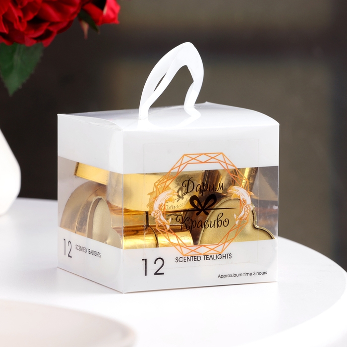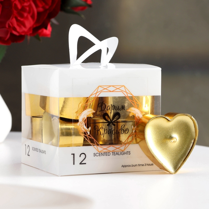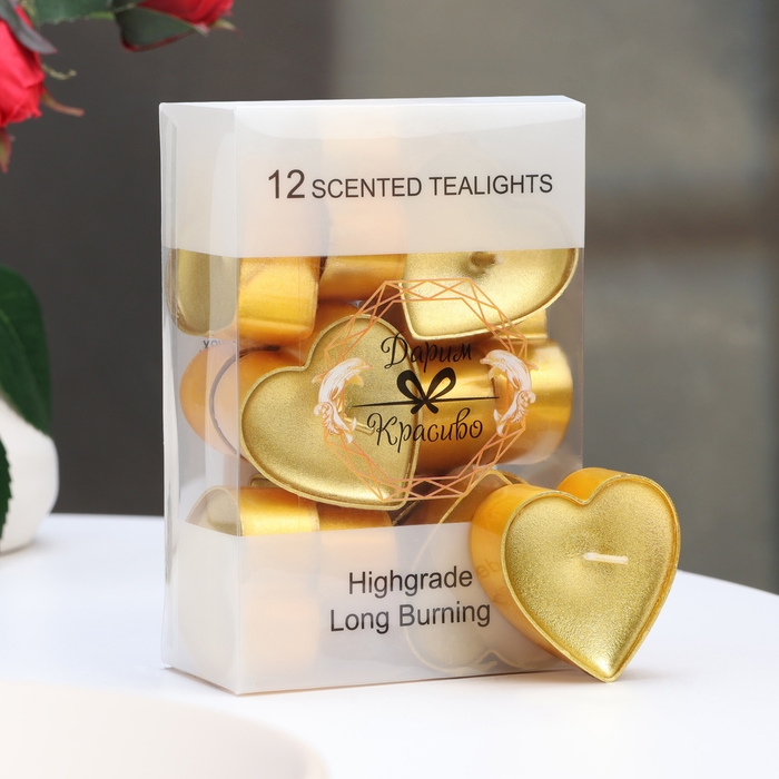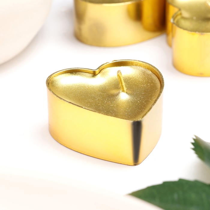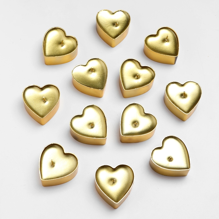 Набор свечей в гильзе "Сердце" 12 шт, металлик, золото