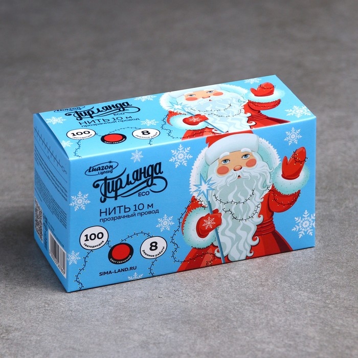 Гирлянда «Нить» 10 м, IP20, прозрачная нить, 100 LED, свечение красное, 8 режимов, 220 В