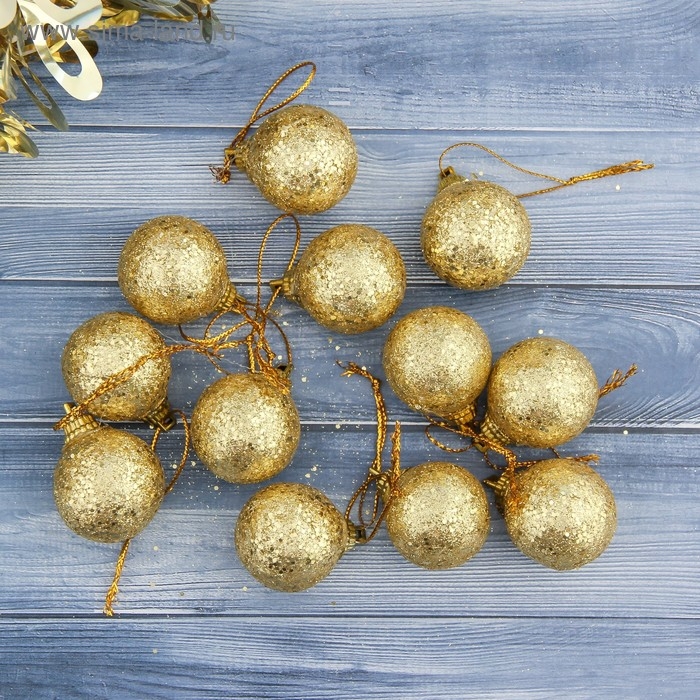 Набор шаров пластик d-2,5 см, 12 шт "Шарики" золото