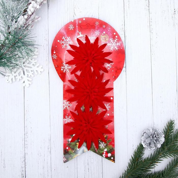Украшение ёлочное "Астра" (набор 3 шт) 8 см, красный