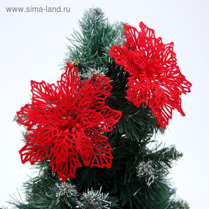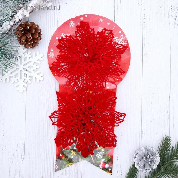 Украшение ёлочное "Резной цветок" (набор 2 шт) 8,5 см, красный