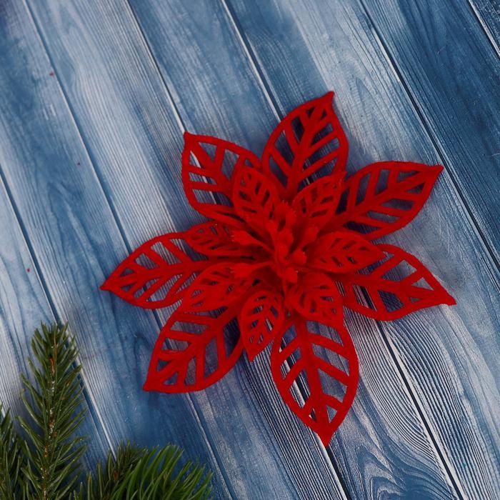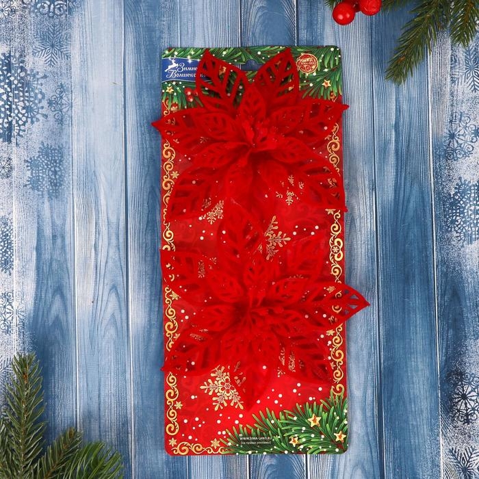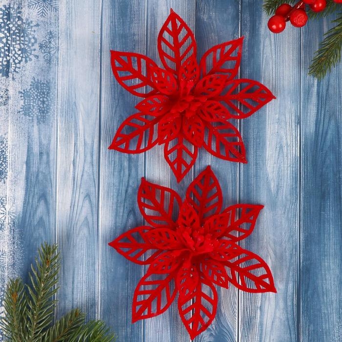 Украшение ёлочное "Резной цветок" (набор 2 шт) 14 см, красный
