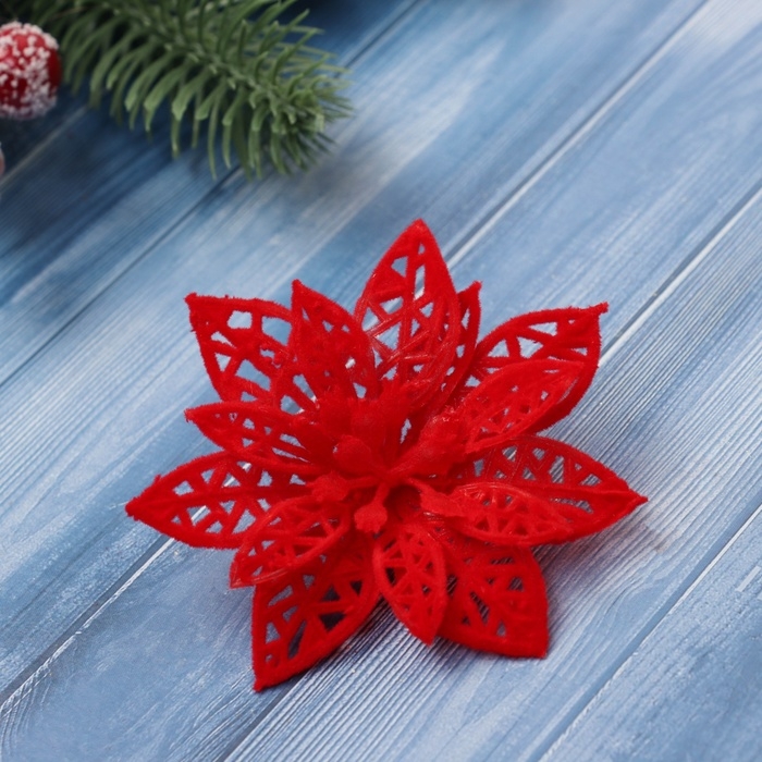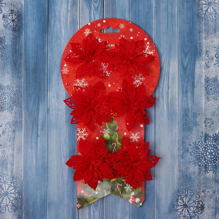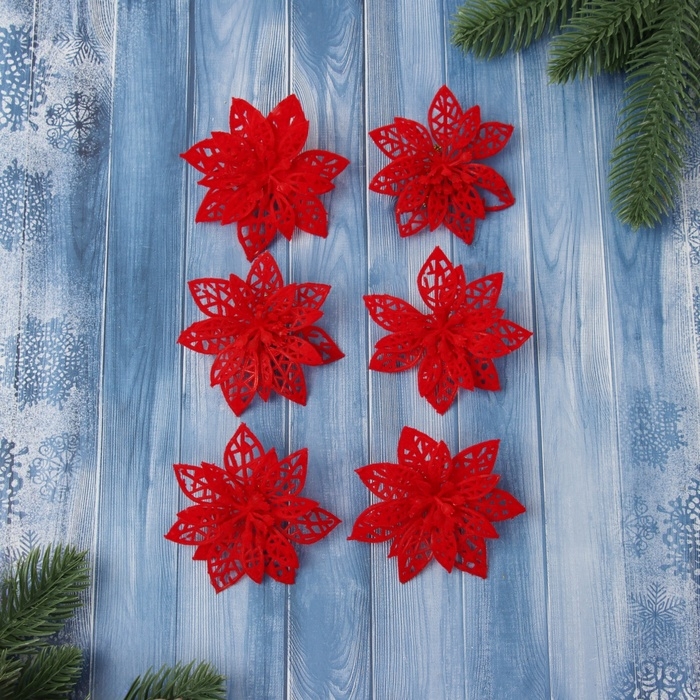 Украшение ёлочное "Резной цветок" (набор 6 шт) 7 см, красный