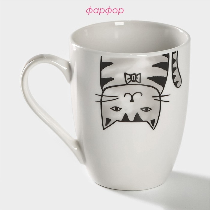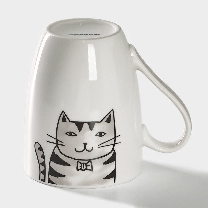 Кружка фарфоровая Доляна «Кис-кис-мяу», 350 мл, цвет белый
