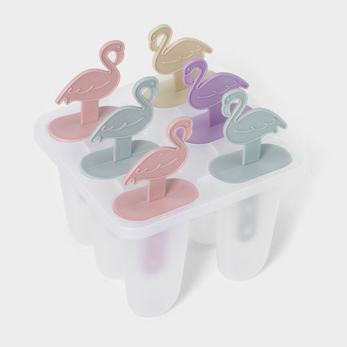 Форма для мороженого «Фламинго», 12,5×11,5×14,5 см, 6 ячеек, цвет прозрачный