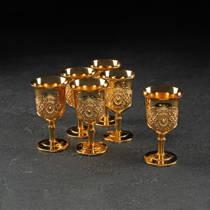 Набор сервировочный «Роскошь. Золото», 8 предметов: кувшин 250 мл, 6 рюмок, 20 мл, поднос, цвет золотой