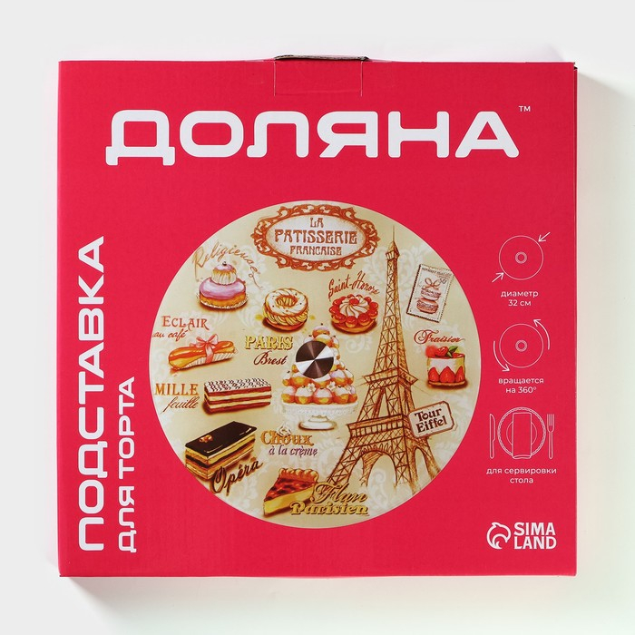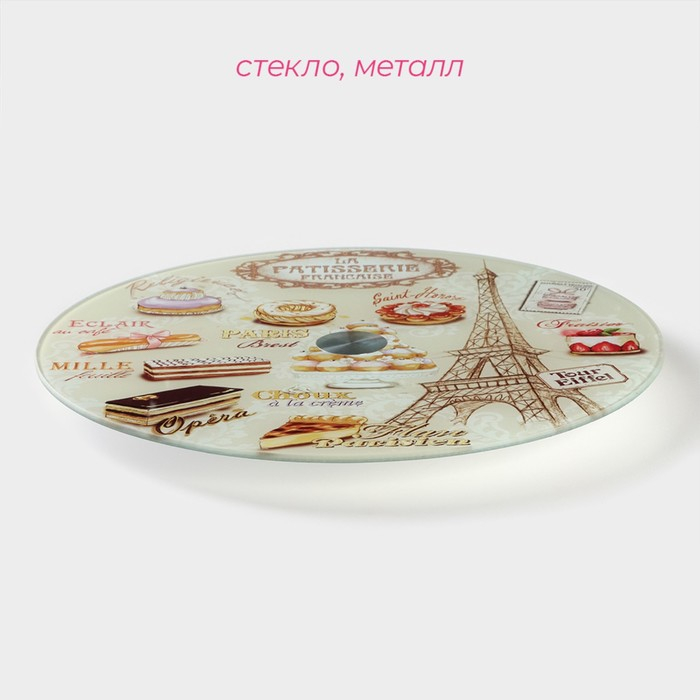 Подставка стеклянная для торта вращающаяся Доляна «Париж», d=32 см ㅤ