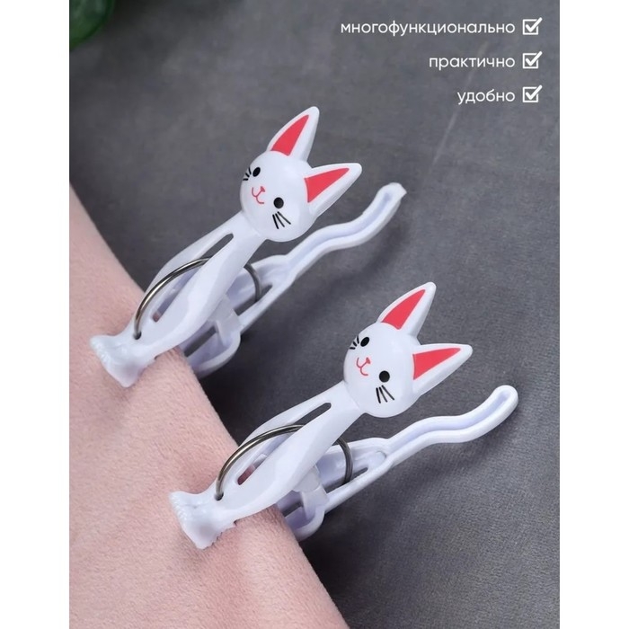 Прищепки бельевые «Коты», 7 см, 4 шт, цвет белый