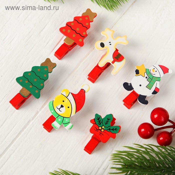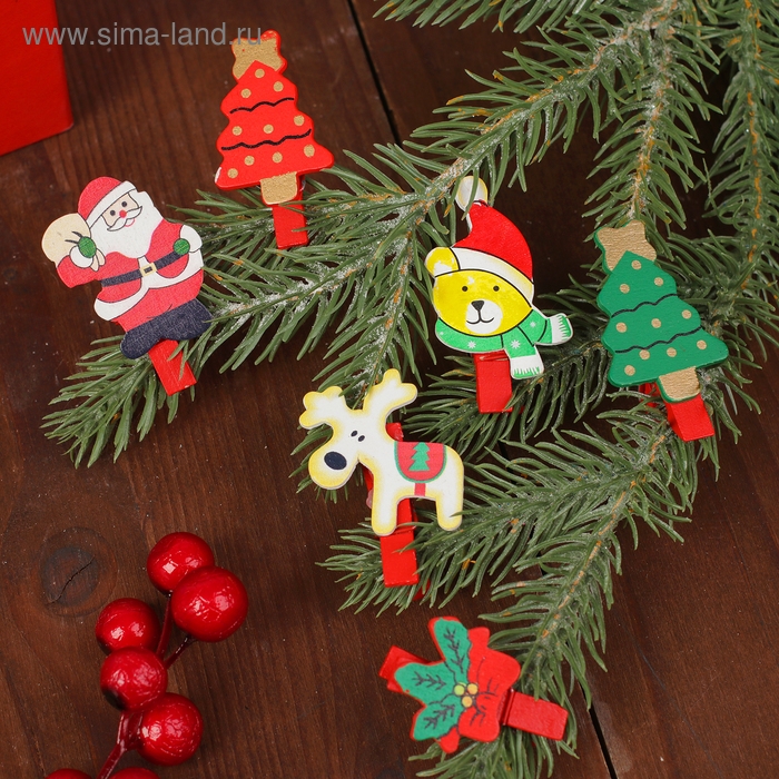 Прищепки новогодние «Новогодние чудеса», набор 6 5 × 3.5 см