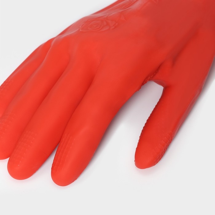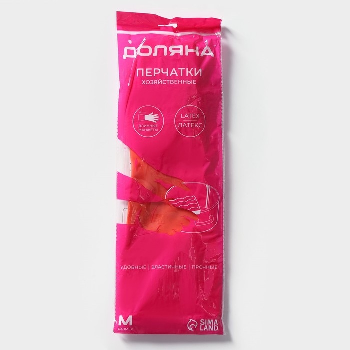 Перчатки хозяйственные Доляна, размер M, 38 см, длинные манжеты, латексные, цвет красный