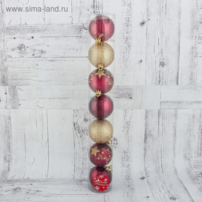 Набор шаров пластик d-6 см, 7 шт "Звёздная мелодия" золотисто-бордовый