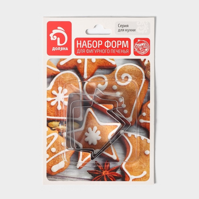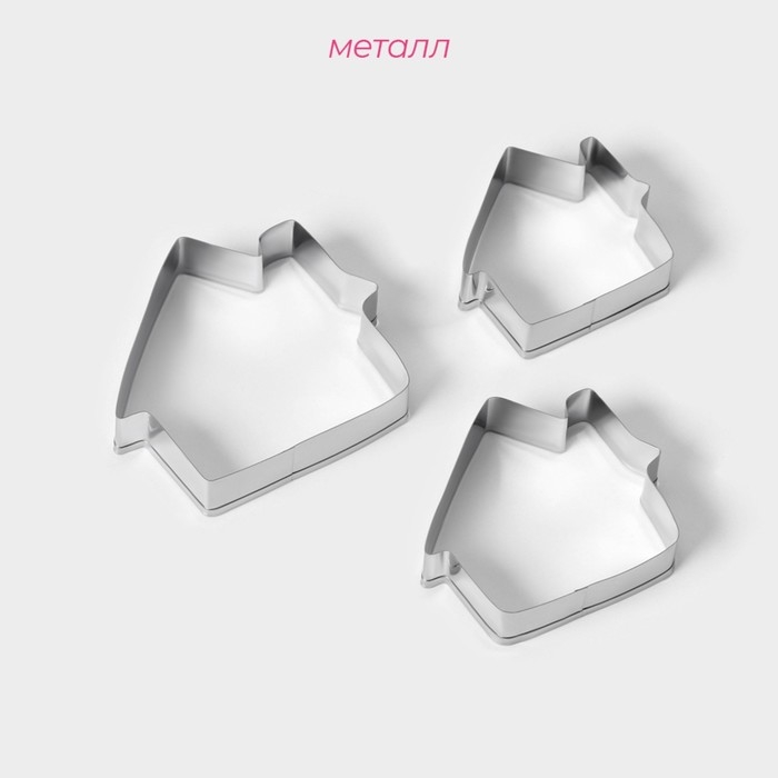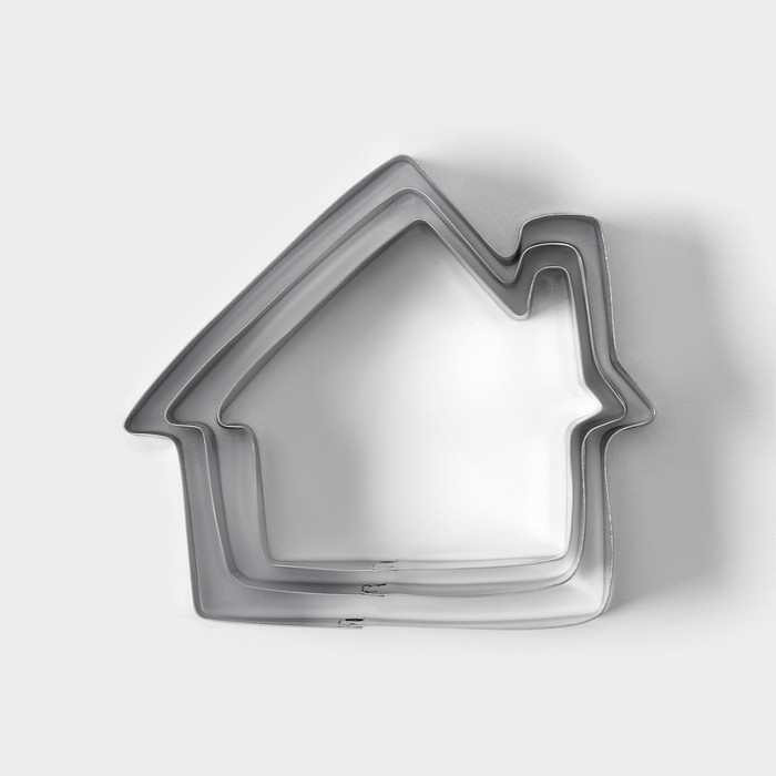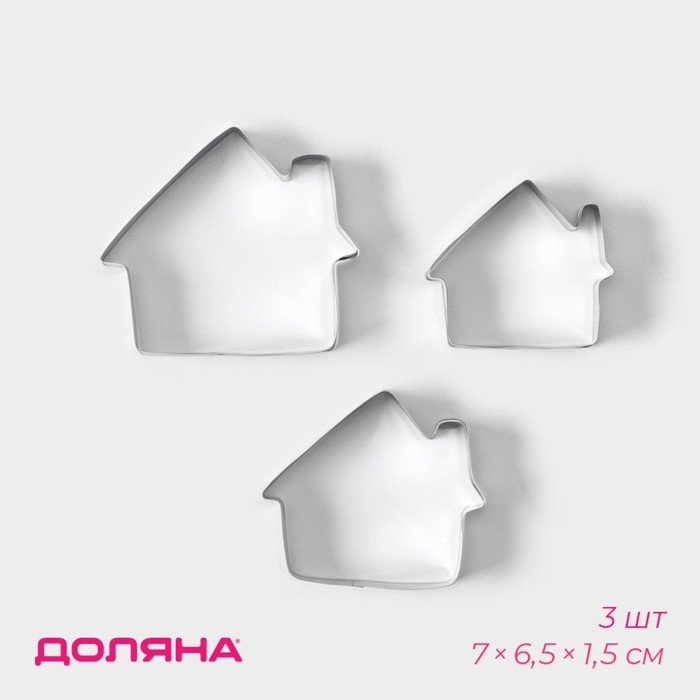 Набор форм для печенья Доляна «Дом», 3 шт, 7×6,5×1,5 см, цвет серебристый