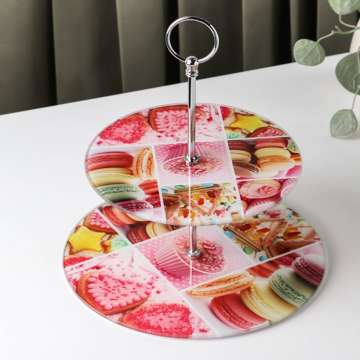 Этажёрка - фруктовница круглая Доляна «Сладости», 2 яруса, d=25/20 см, стекло, цвет розовый
