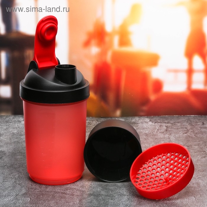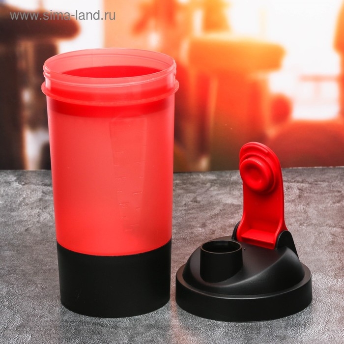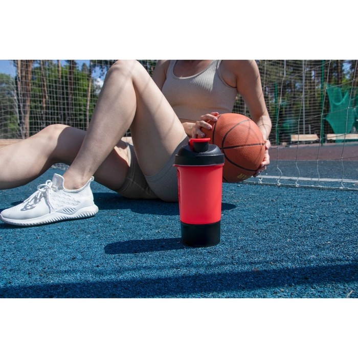 Шейкер спортивный с чашей под протеин, красно-чёрный, 500 мл