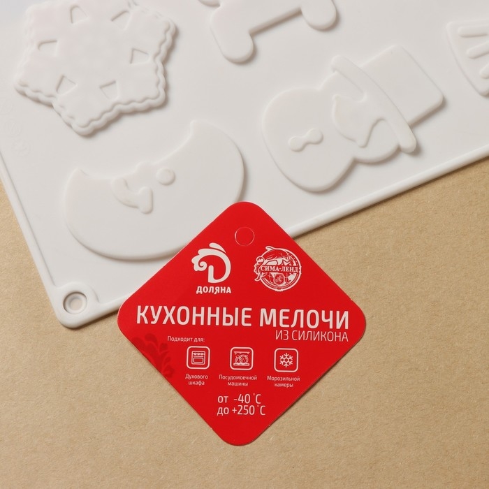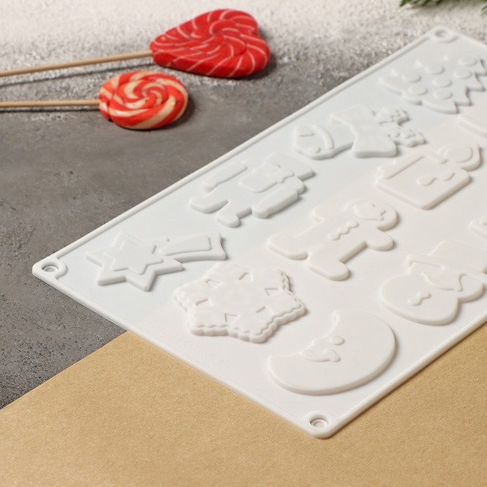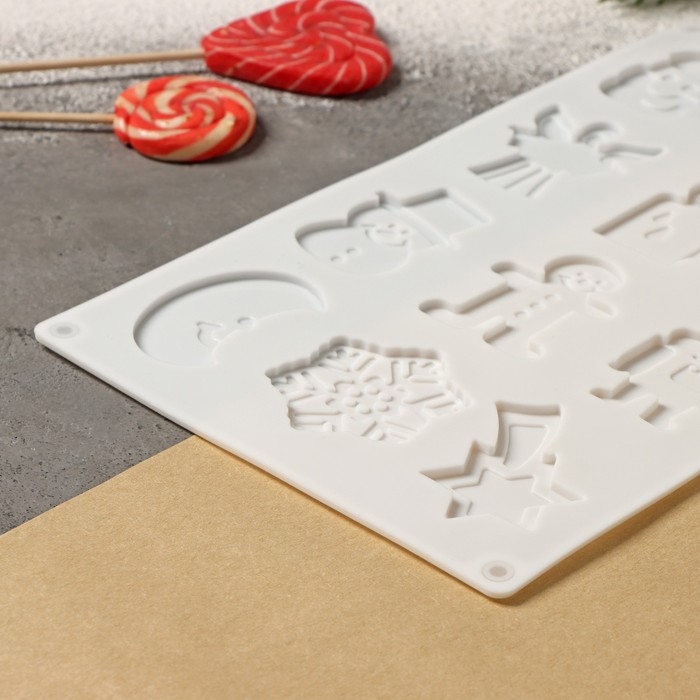 Форма для кондитерских украшений новогодняя Доляна «Новый год», силикон, 29,3×17,3 см, 12 ячеек, цвет белый