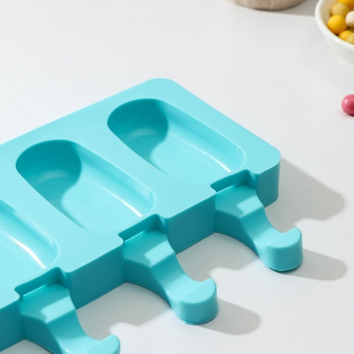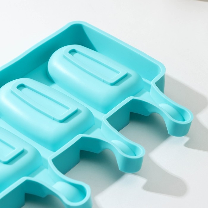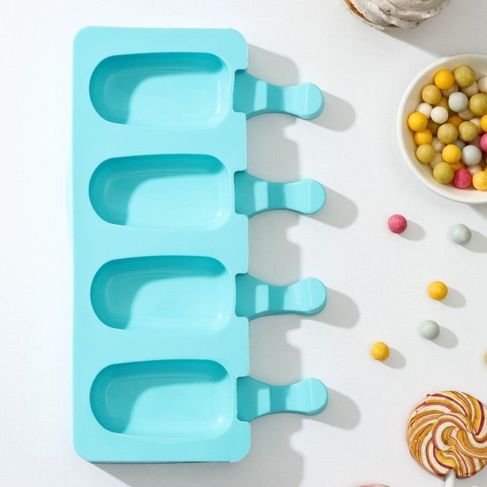 Форма для мороженого Доляна «Эскимо малое», силикон, 21,5×12,5×2 см, 4 ячейки (6,9×3,8 см), цвет МИКС