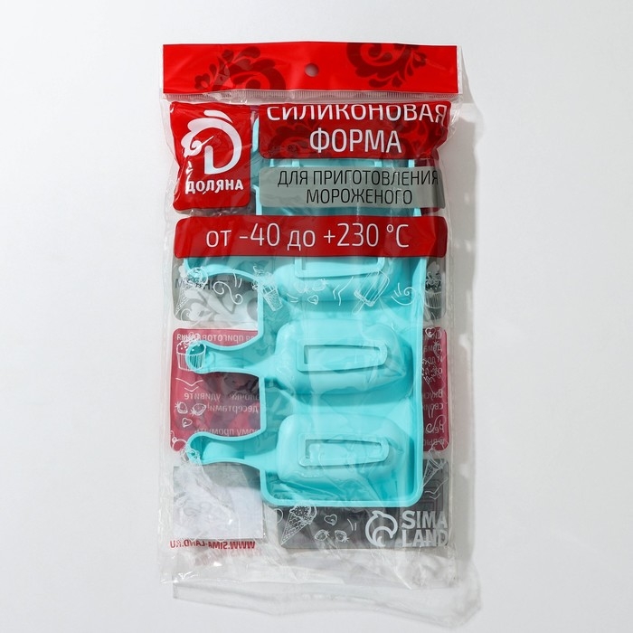 Форма для мороженого Доляна «Моника», силикон, 19,5×11 см, 4 ячейки (6,7×3,2 см), цвет МИКС
