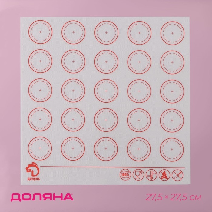 Армированный коврик для выпечки макаронс Доляна «Макарон. Доляна», силикон, 27,5×27,5 см, цвет белый