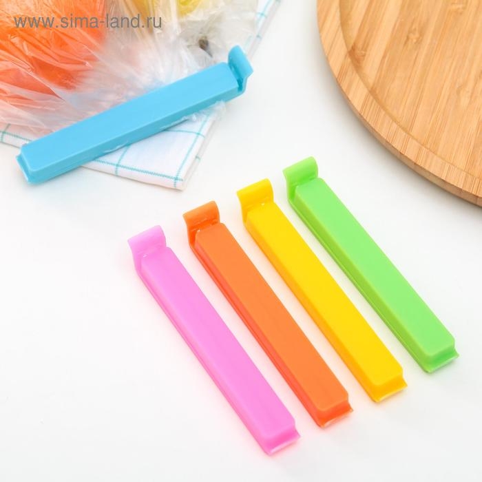 Набор зажимов для пакетов, 4×1,7 см, 4 шт, цвет МИКС