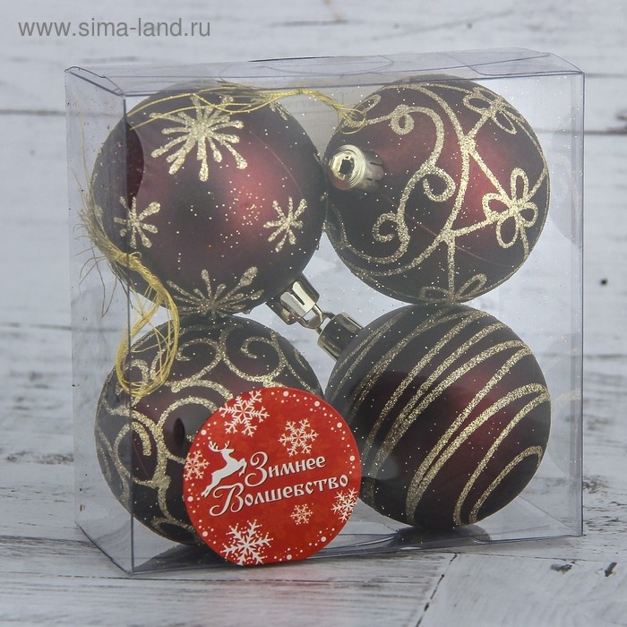 Набор шаров пластик d-6 см, 4 шт "Золотые узоры"