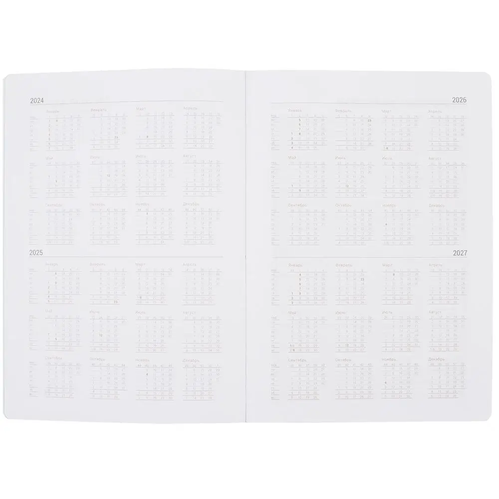 Ежедневник с твердой обложкой, выполнен из материала Latte, серый СС, обрез серого цвета, дополнен резинкой и ляссе серого цвета.