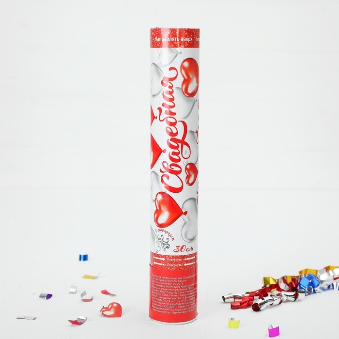 Хлопушка пневматическая «Свадебная», фольга, серпантин, вложения, 30 см