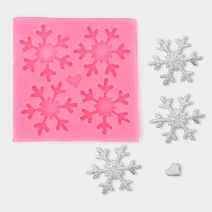 Молд новогодний «Четыре снежинки», силикон, 8,5×8,5 см, цвет розовый