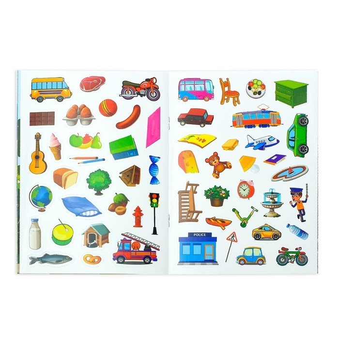 В альбоме представлено 111 наклеек с красочными изображениями животных, растений, букв, фруктов, овощей и других важных предметов окружающего мира. Яркие картинки положительно влияют на визуальное восприятие малыша, память и воображение.