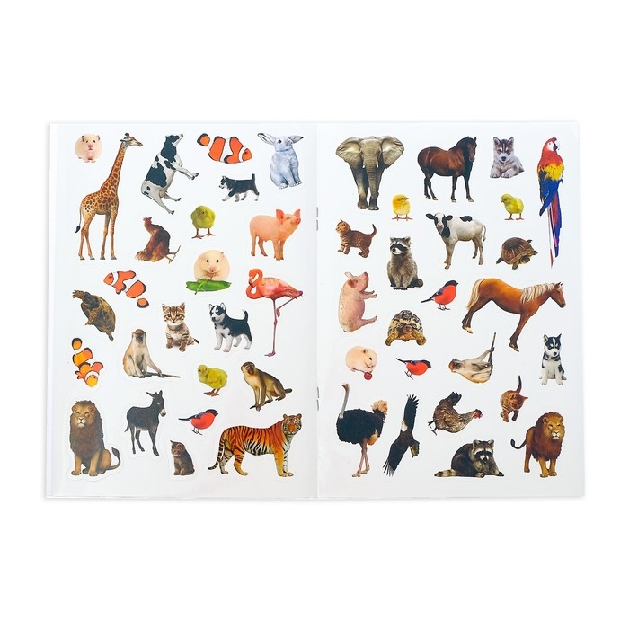 - В альбоме представлено более 100 наклеек с красочными изображениями животных, птиц и не только.