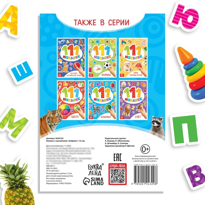 Книжка с наклейками «Алфавит», 12 стр.
