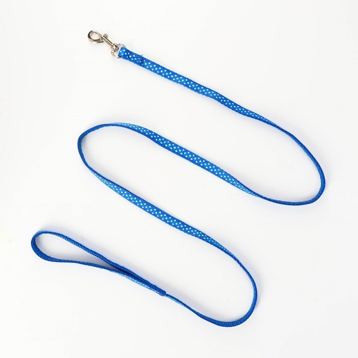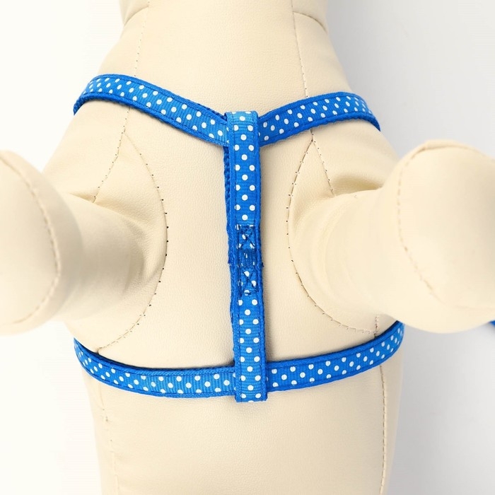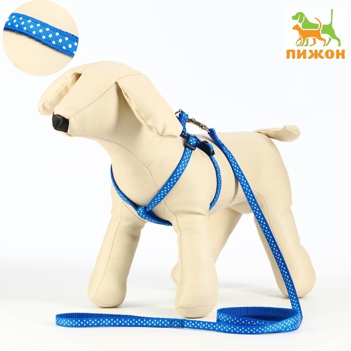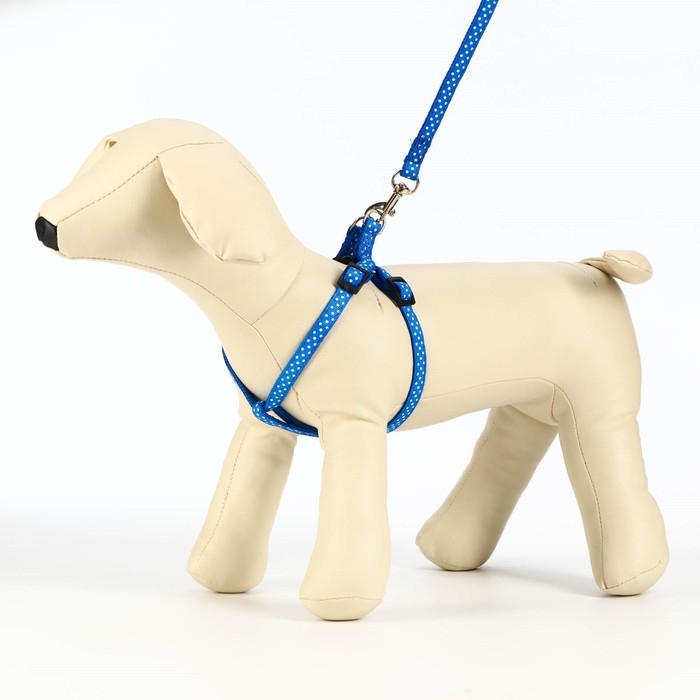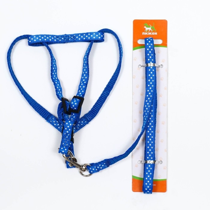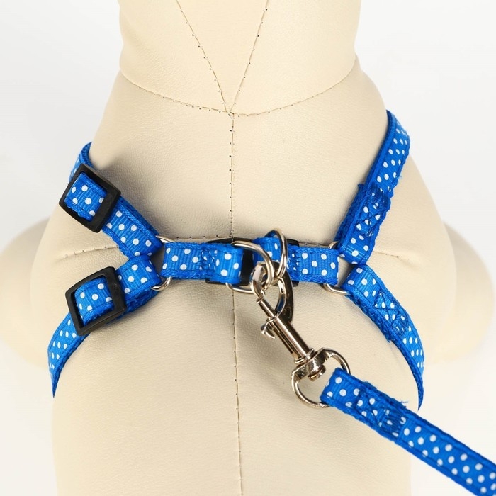 Комплект прошитый "Горошек", ширина 1 см, поводок 120 см, шлейка 23-35 см, синий