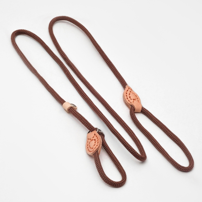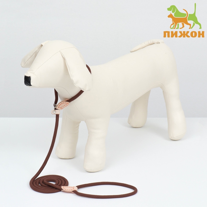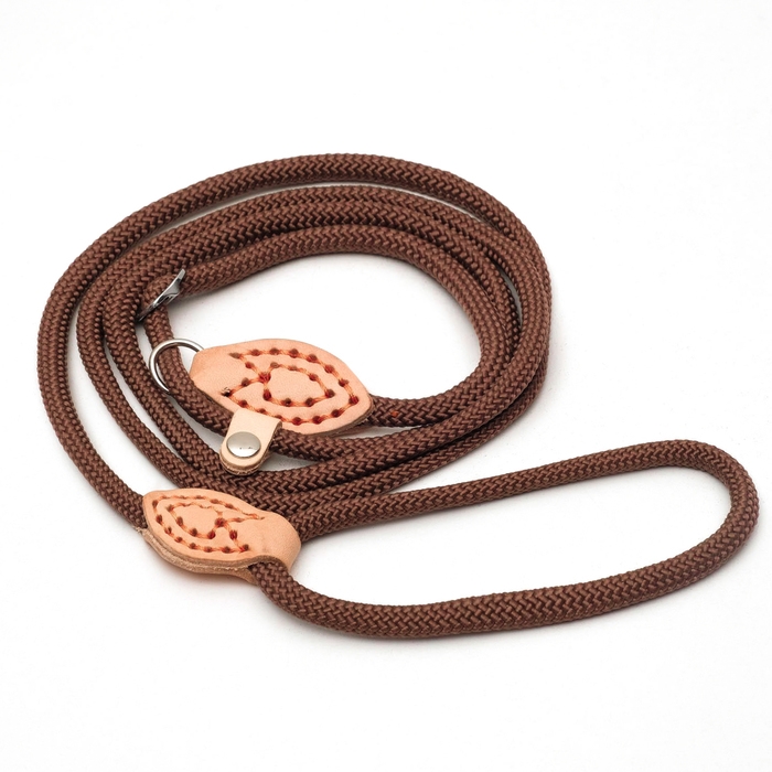 Поводок-удавка 150 см х 6 мм, полиэстер и натуральная кожа, коричневый