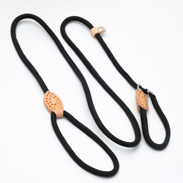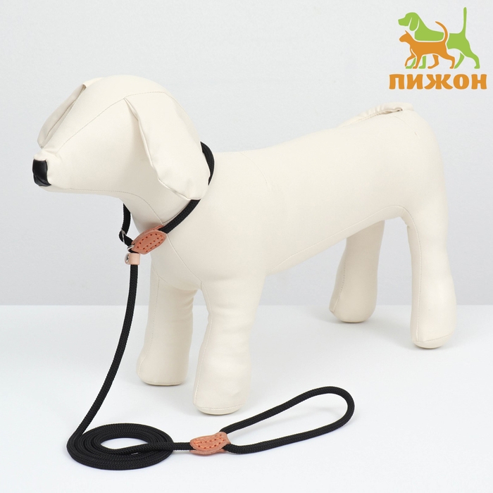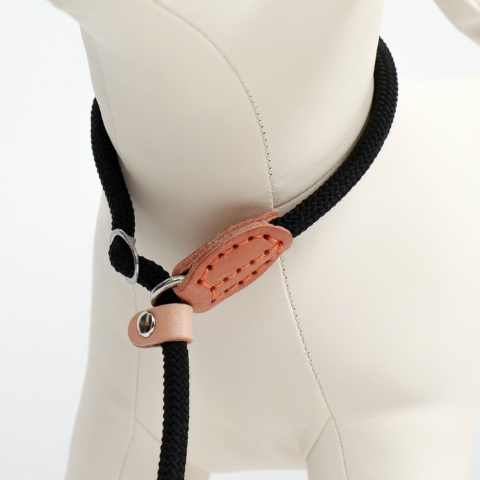 Поводок-удавка 150 см х 6 мм, полиэстер и натуральная кожа, чёрный