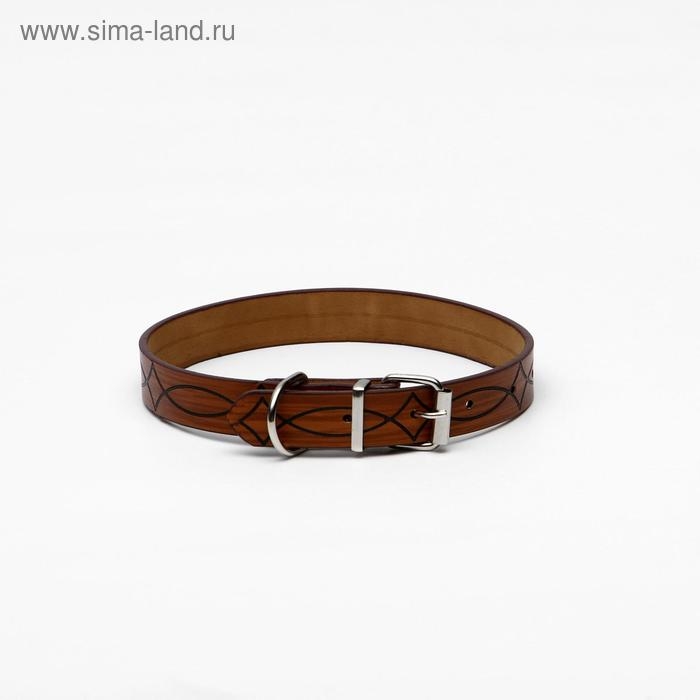 Ошейник двухслойный 66 х 3,5 см,ОШ 50-60, коричнево-красный