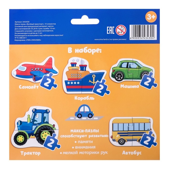 Макси-пазлы «Весёлый транспорт», 5 пазлов, 10 деталей