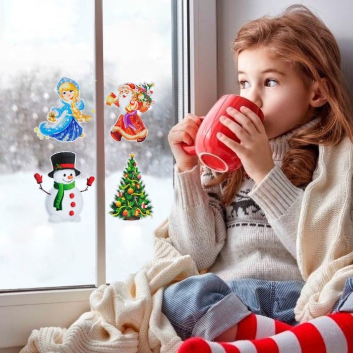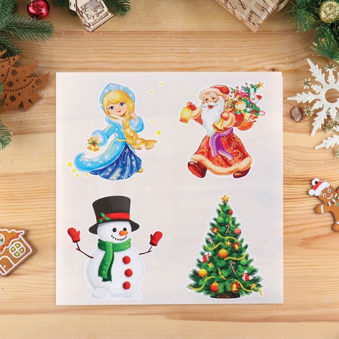 Набор наклеек на окна "Новогодний" 4 наклейки в наборе, 14,3 x 16 см