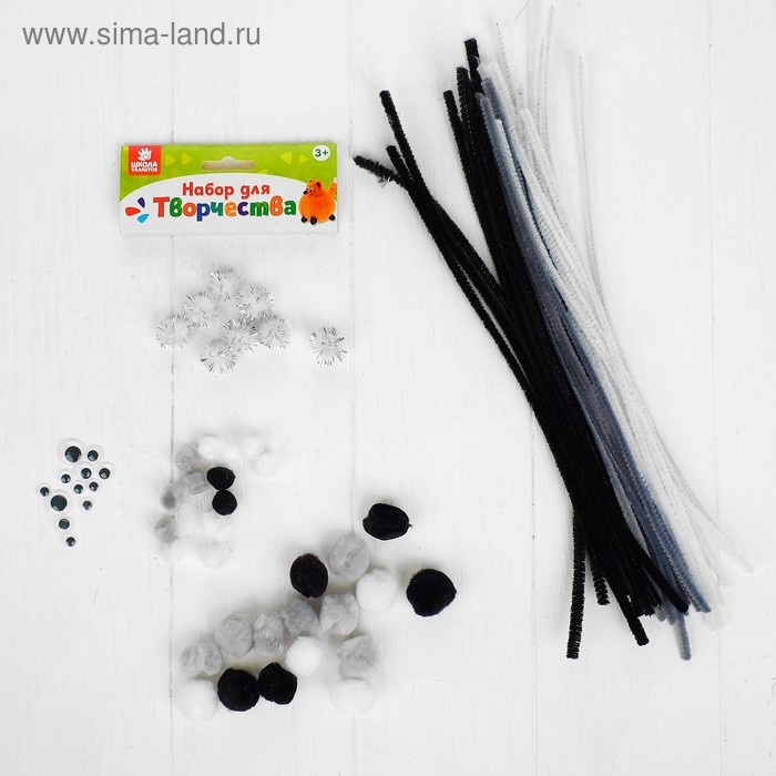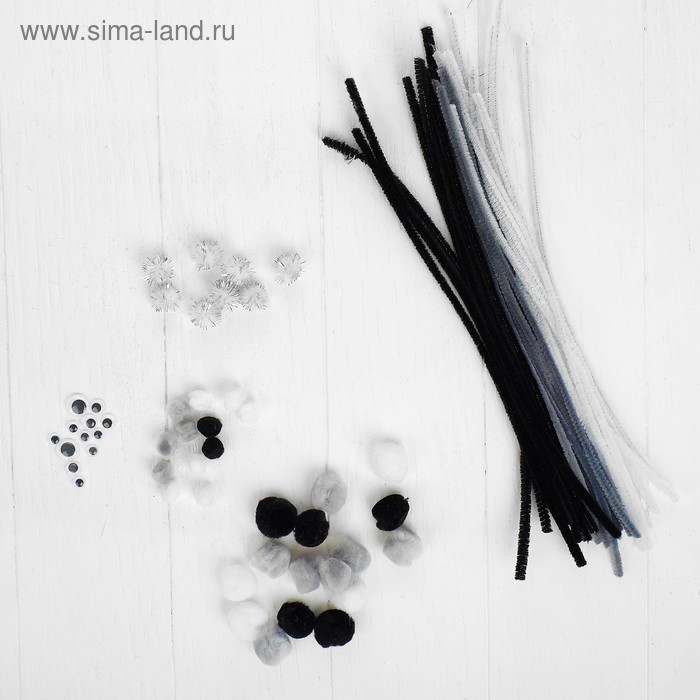 Набор для творчества из проволоки с ворсом, помпонов, глаз №10, цвет бело-черный