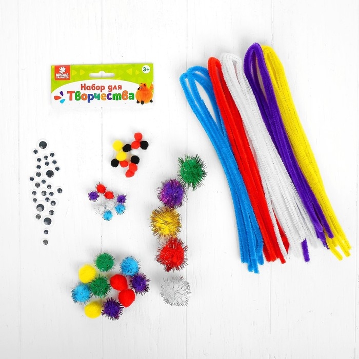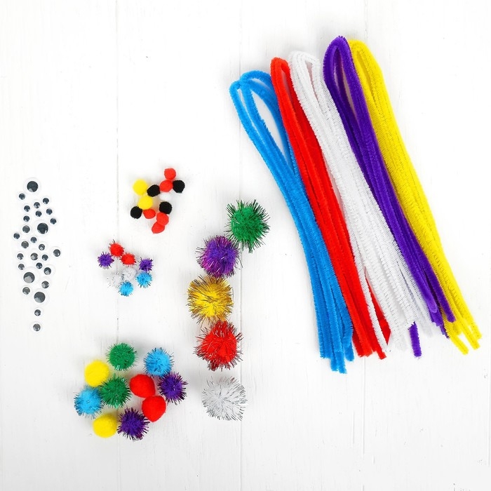 Набор для творчества из проволоки с ворсом, помпонов, глаз №13, цвет МИКС
